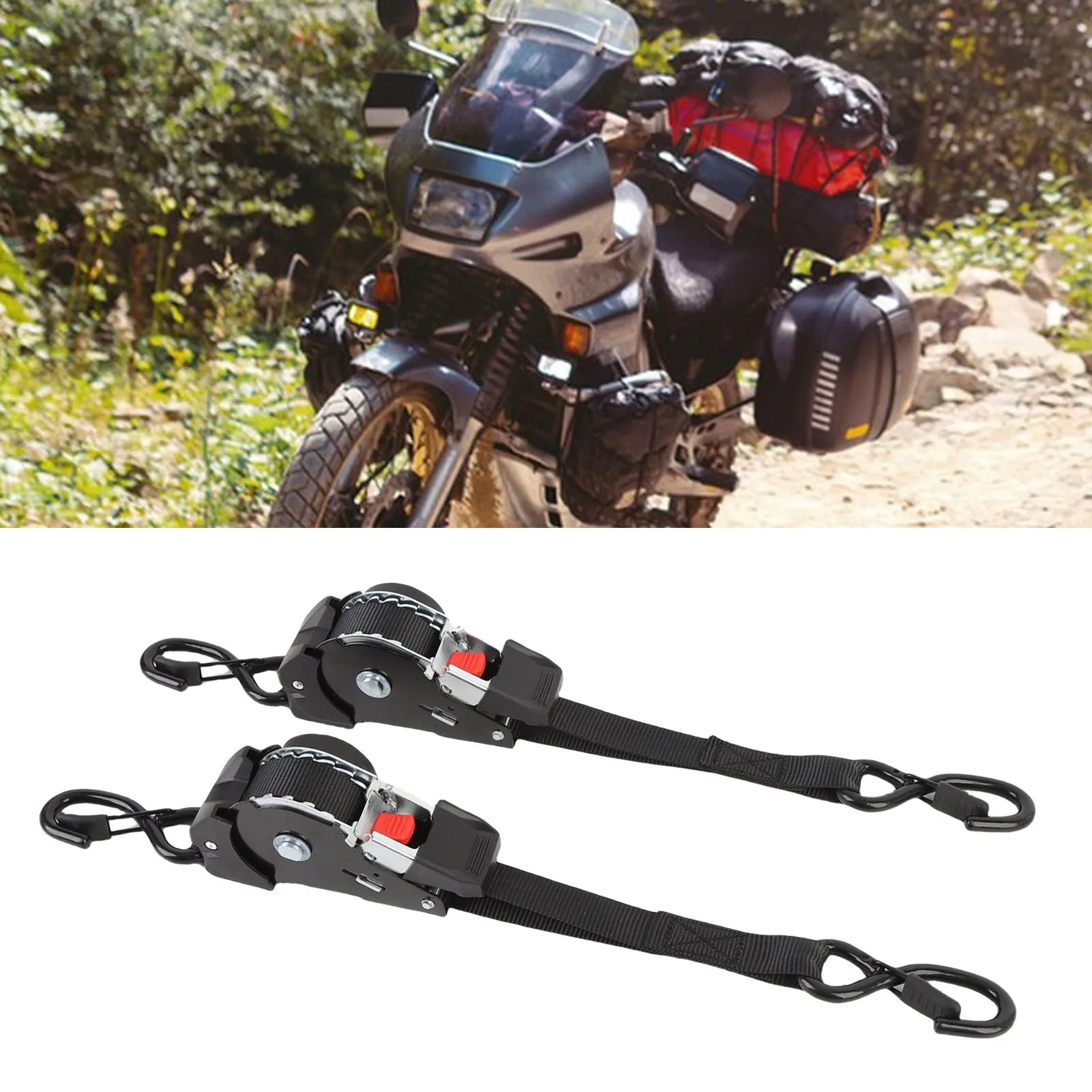 Incluye la correa trinquete retráctil y ganchos S resistentes listos para usar; todo lo necesario para asegurar motos, ATVs y remolques desde el primer uso.